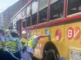 バンコクの赤バスが高齢女性をはね、引きずる。女性は重傷。