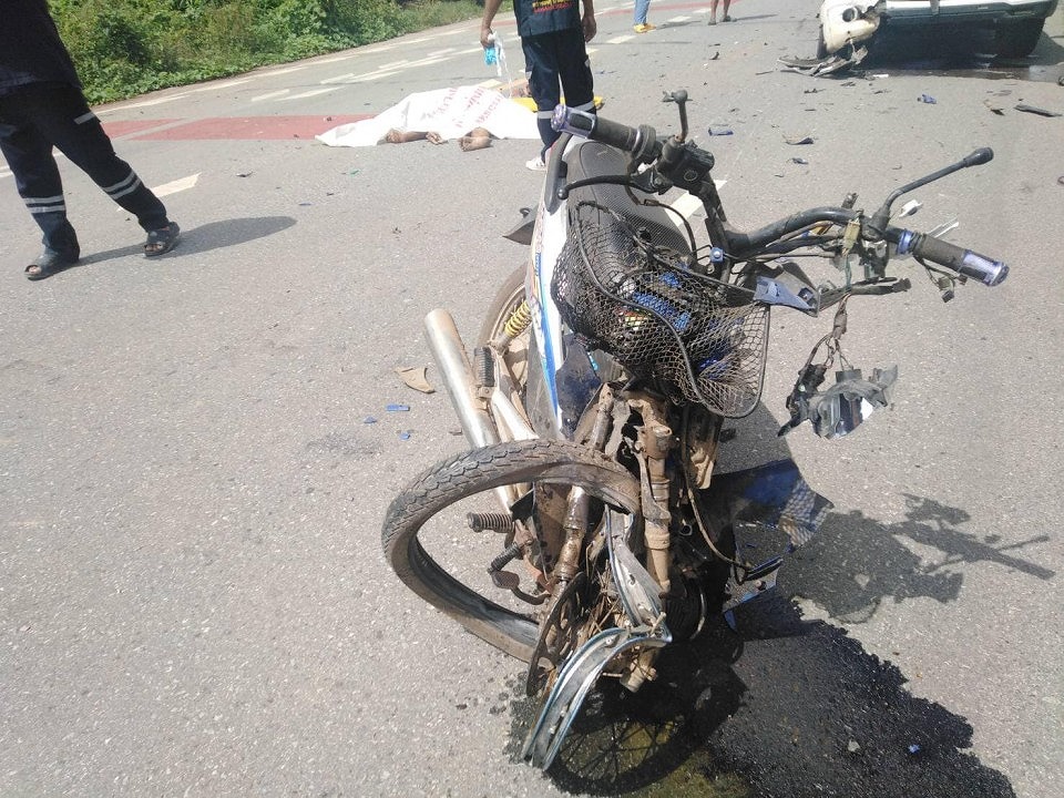 警察が現場に到着すると、バイクの運転手であるプラサート・サッカセットさん(56歳)が夥しい出血と共に死亡しているのを発見しました。