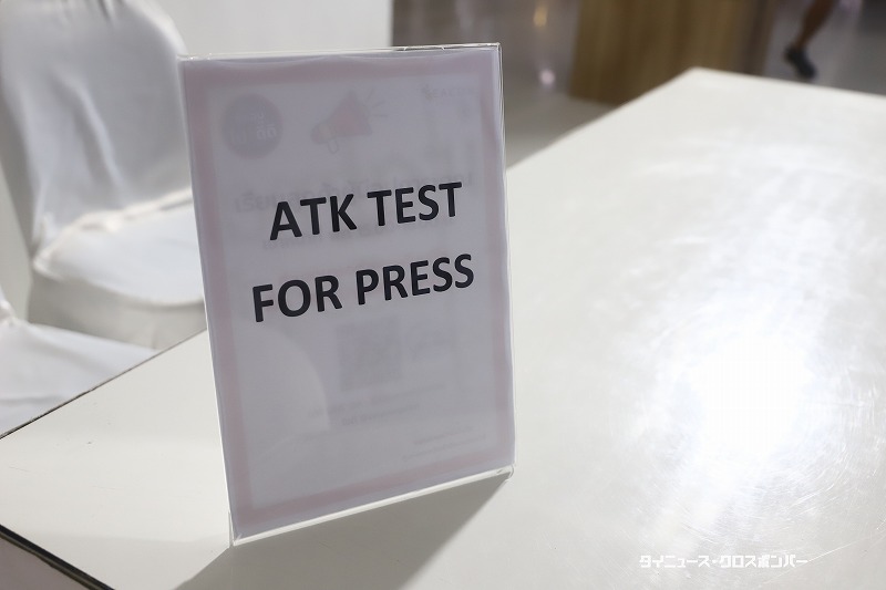 我々も、メディア用に無料で用意されたATKキットによる検査が行われ、陰性が証明されないとメディアブースに入れないという徹底ぶりでした。