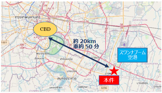 バンコク東部の主要幹線道路「バンナートラート」やスワンナプーム空港へのアクセスに優れ、また商業施設・学校・病院が近接した生活利便性の高いエリアに位置しております。
