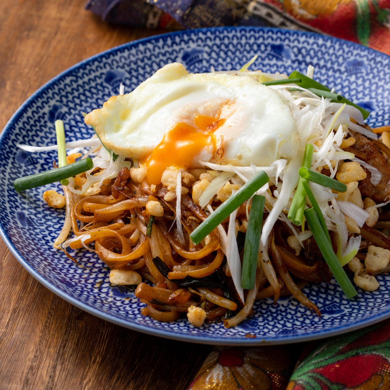 濃厚なパッタイソースに非常に馴染むフライドエッグのまろやかさとシャキシャキのネギの食感が癖になる!