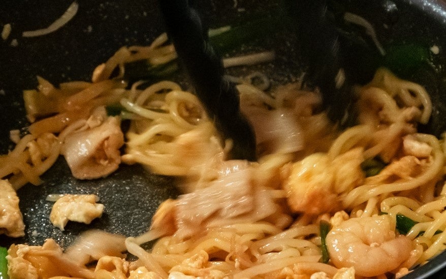 圧倒的なもちもち食感の生麺パッタイ。1人前づつ炒めたてで味はマイルド!