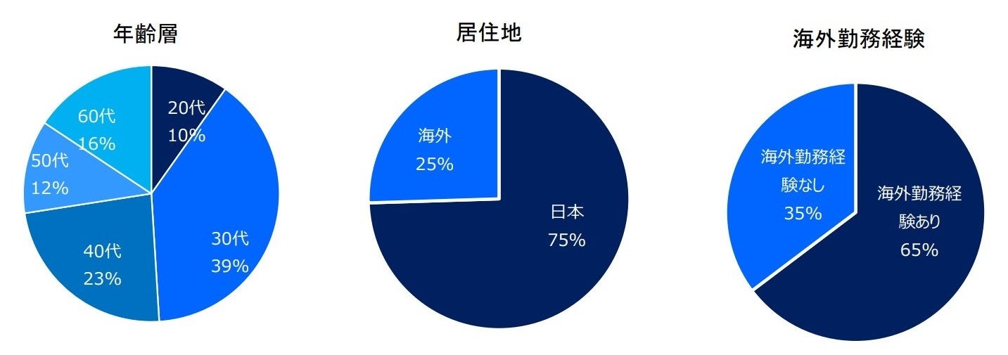 海外キャリアを志向する若手層だけでなく、ある程度の経験を積まれた後、もしくは退職後のセカンドキャリアとして海外を検討される方も多いことが伺われます。