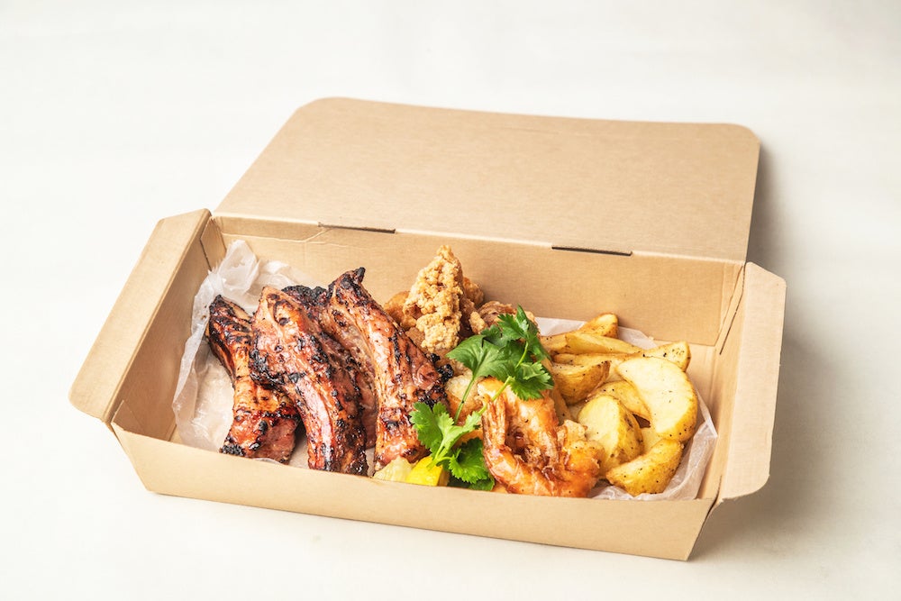 ジューシーなバックリブ、ナンプラーが香るタイ風唐揚げガイトート、お酒にぴったりのやみつきフライドシュリンプ、フライドポテトのスペシャルセットです!