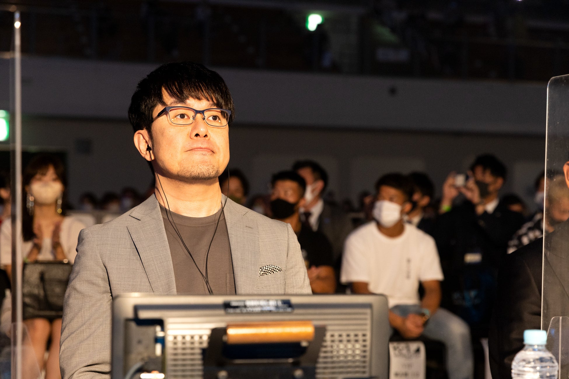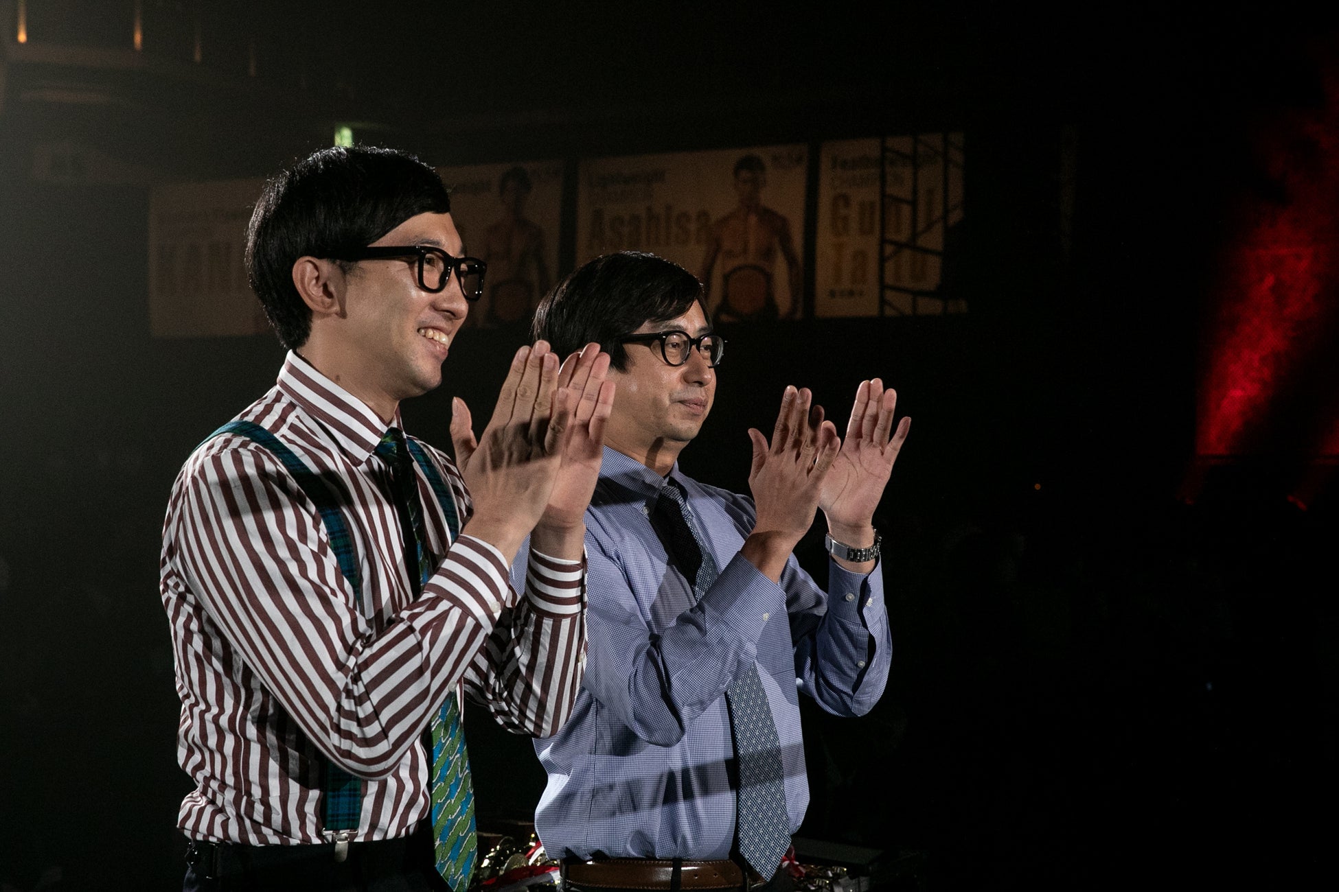 最後に、スペシャルリングアナをされたおいでやすこがのお二人に、お互いを100点満点で採点するなら何点かを伺うと、こがけんさんは「…56点ですね。壬生狼選手の名前を声が割れるくらい大きな声で叫んだじゃないですか。あのあとの、ジャッジの方たちは、とても冷静に名前を言ったんですよ。僕は全叫びで言ってほしかったですね。そういう意味で56点です。」と呆れた顔で採点するこがけんさんに対し、小田さんは「ふざけるな!」と切り込み、「こがけんは、20点くらい。」と採点の理由も伝えずに、ばっさりと評価しました。