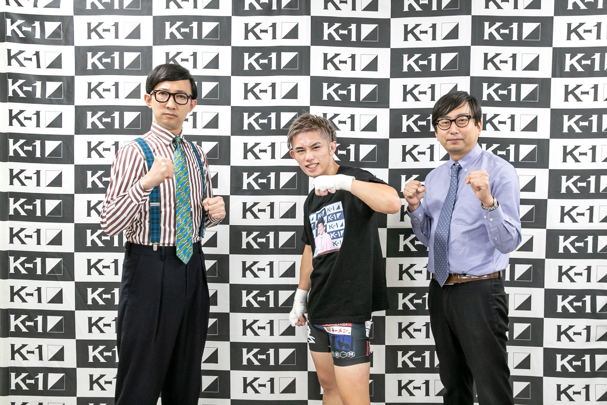 また、おいでやすこがの2人に、K-1 WORLD グランプリは普段からご覧になることがあるか伺ったところ、こがけんさんは「ときどき見る程度でしたが、今回の機会をきっかけに真剣に追っかけていきたいと思っています。あと、M-1でも決勝にいくと記者会見がありますが、壬生狼選手は記者会見でめちゃくちゃボケてて、でも当日は真剣に取り組む姿勢を見習って…、僕も大会の記者会見ではボケまくって、当日はボケないでおこうと思います(笑)!」と笑いを取り、小田さんも初のK-1試合の生観戦でとても濃密な時間だったことを話されました。