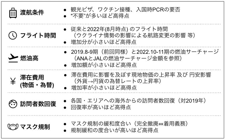 「今、行きやすいのはどこなのか?」を、6つの指標から、客観的に調査しました。すると、今、行きやすい「リベンジ海外旅行」の形が見えてきました。