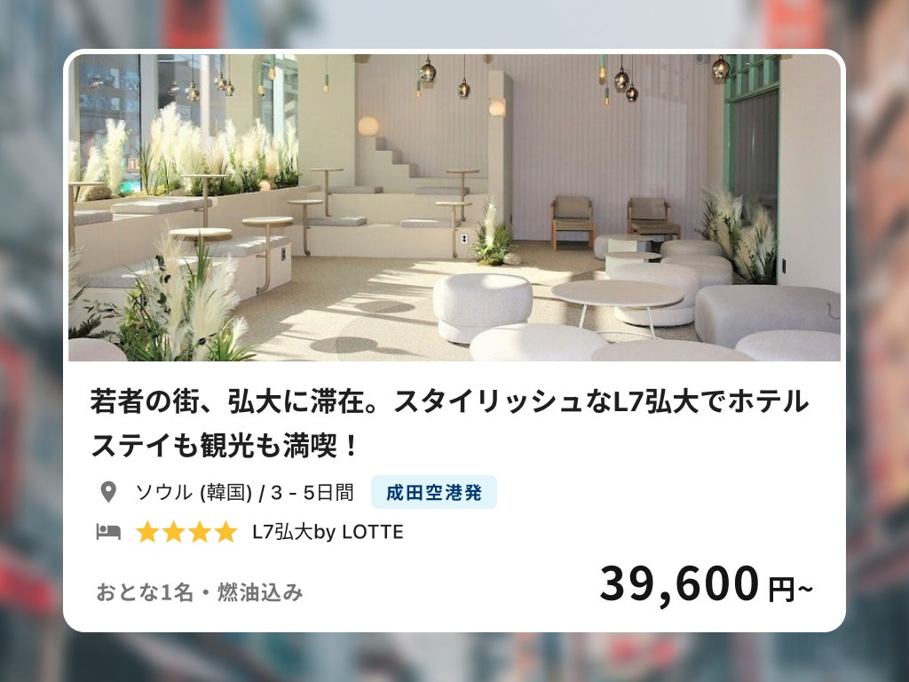 また、注目の韓国旅行では、注目の新エリア宿泊のツアーなど、コロナ前とは違う「あたらしい韓国旅行」をご提案しております。