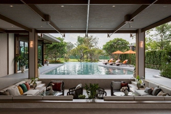 本プロジェクトは、総戸数276戸(地上2階建て)で、戸当たり196㎡~426㎡、4~5ベッドルームのゆとりある高品質な一戸建てを提供します。敷地内には、屋外プールデッキと屋内リビングスペースを備えたプール、180度のパノラマビューを楽しめるフィットネスクラブ、キッチンスペース、コワーキングスペースなど充実した共用施設を備えています。また、EV充電器や太陽光発電、断熱性能が高く紫外線もカットする窓ガラス、エネルギー効率を最大化する仕様を全戸に標準で設置するなど、タイにおいては先進的な環境配慮の取り組みを導入しています。