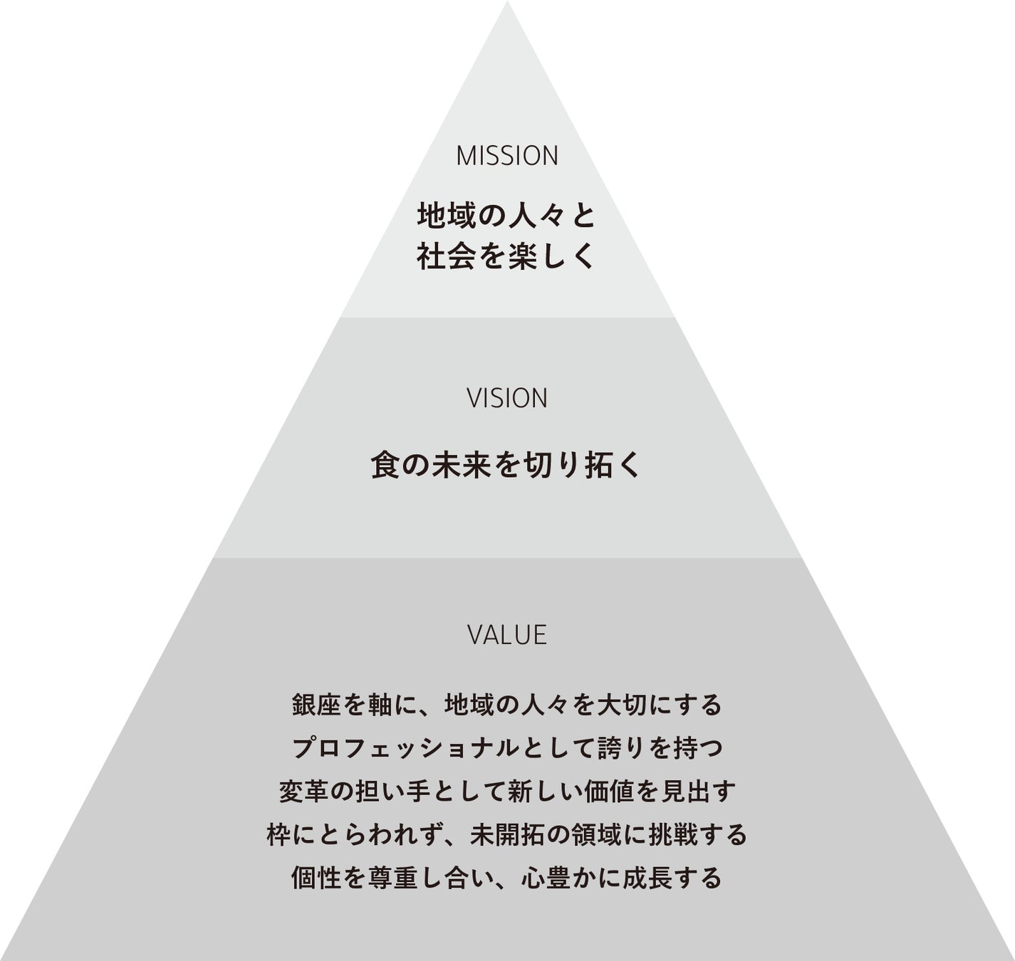 大東企業の飲食店ブランドは、銀座の街とともに成長して参りました。これからも地域のお客様に喜んでいただけるよう、料理人としての誇りを持ちながら日本の食文化の価値を高め、食文化を通して地域と世界の人々に貢献し、次の時代へあらゆる食文化のストーリーを紡いでいきます。