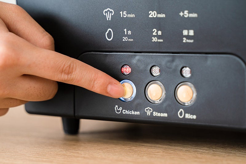 調理中の誤作動を防ぐ「ロック機能」、調理完了までの残り時間を30、20、10分の3回、音でお知らせする「アラーム機能」など、目を離していても安心してお使いいただける便利な機能を搭載。