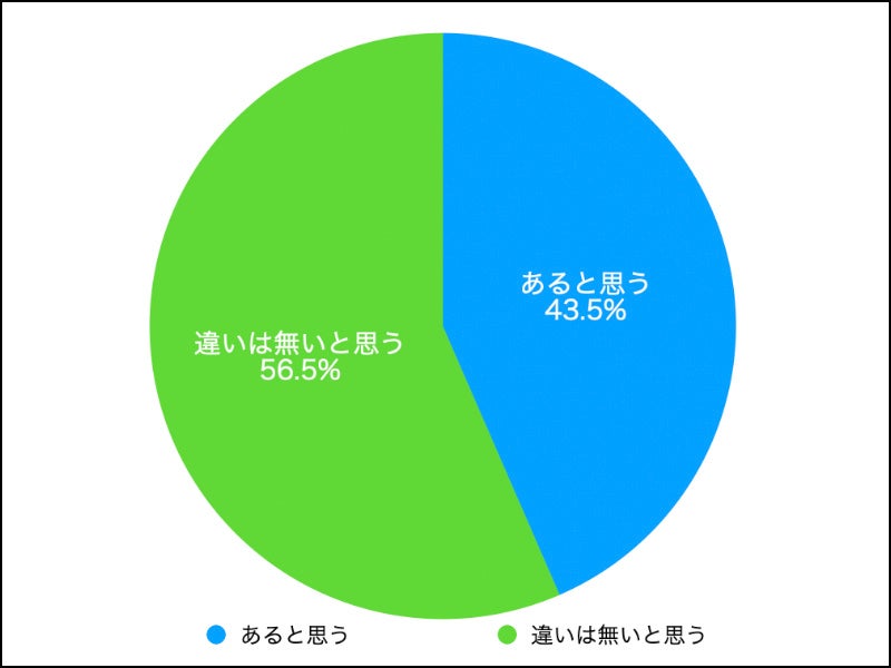 この質問には「違いは無いと思う」のほうが少しだけ多くなりました。