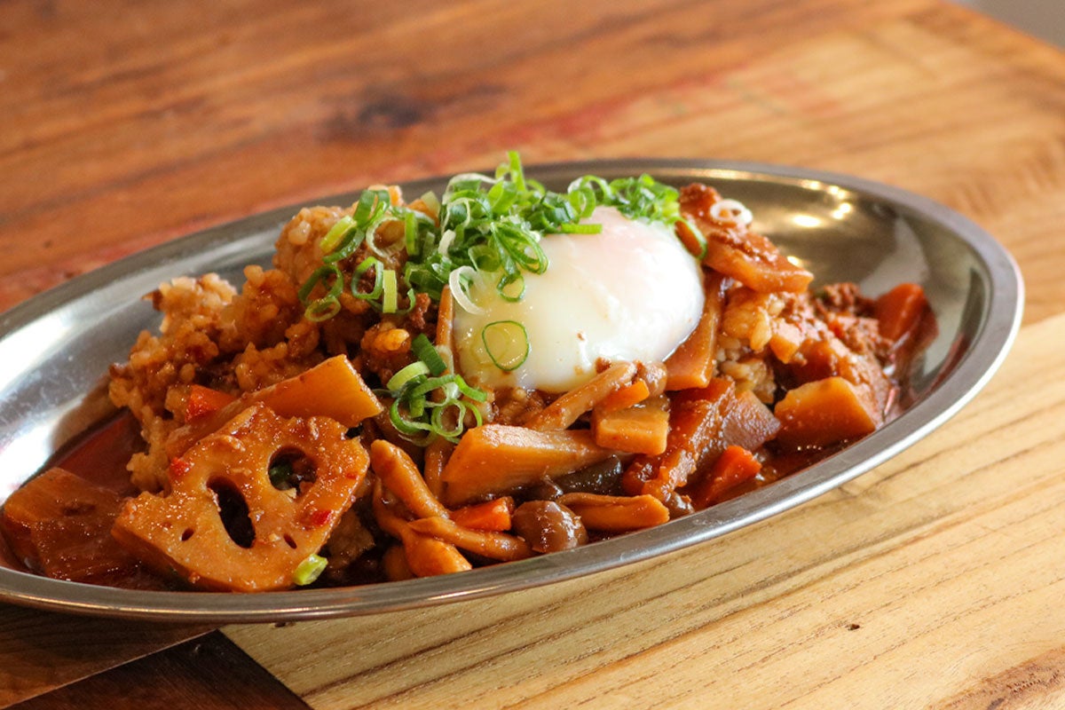 ごろごろと食感の違う野菜をあわせ、満足感のある“野菜をたべる”麻辣丼に。食べ応えのある最後まで飽きずに楽しめるシビ辛かけごはんです。