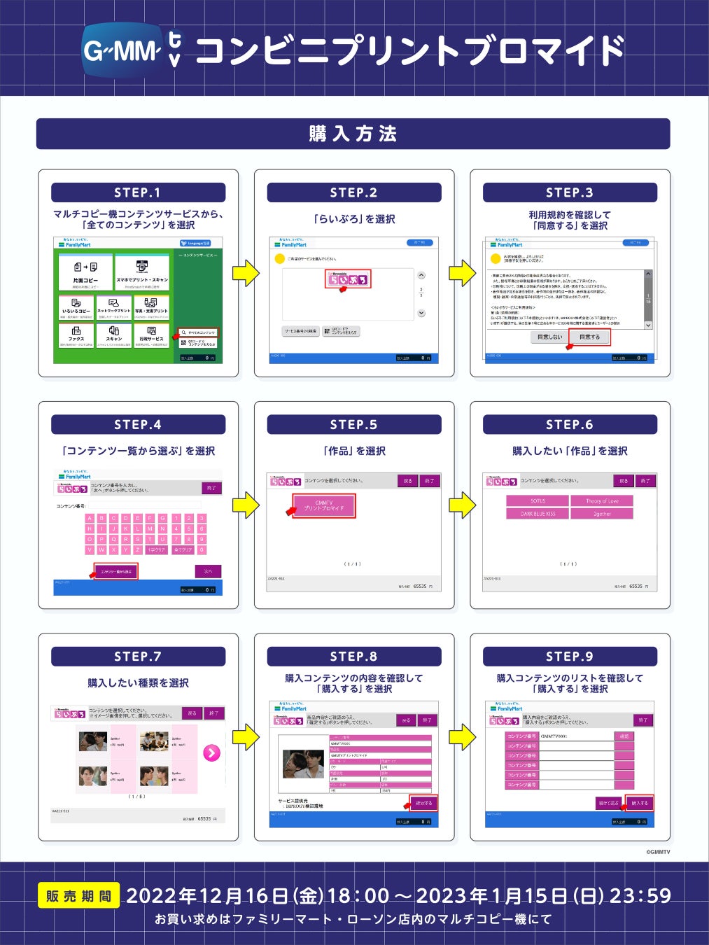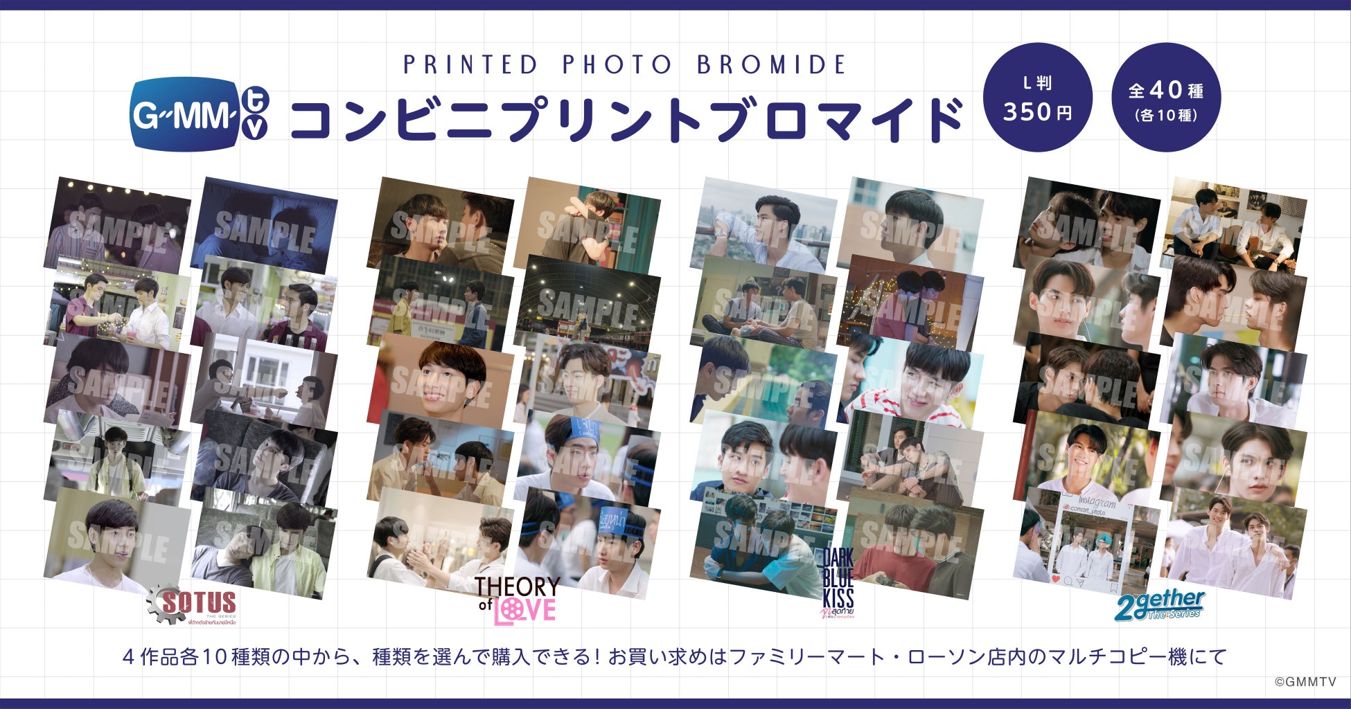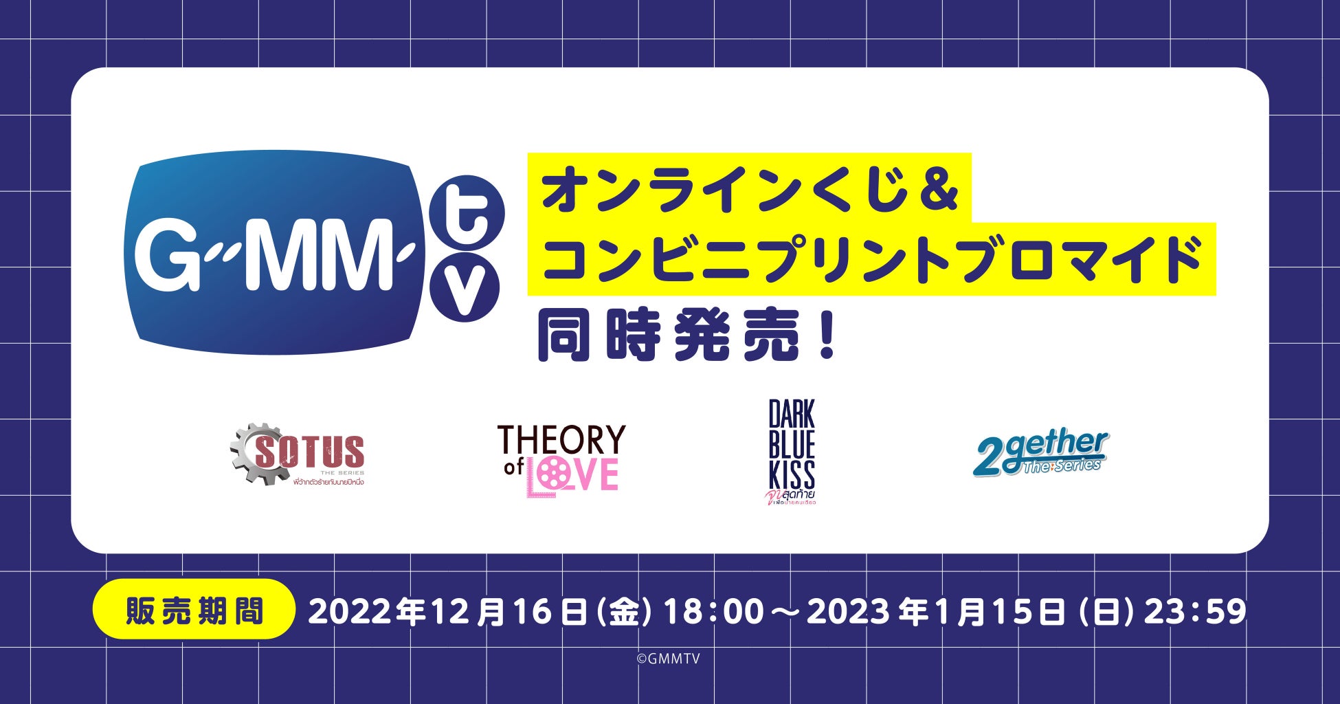 株式会社MOGURA ENTERTAINMENT(本社:東京都新宿区、代表取締役CEO:野村岳史)は、GMMTVの人気4作品『SOTUS the series』『Theory of Love』『Dark Blue Kiss ~僕のキスは君だけに~』『2gether』の名シーンを使用した「コンビニプリントブロマイド」と、オリジナルグッズが必ず当たる「オンラインくじ」をそれぞれ2022年12月16日(金)18:00より販売開始いたします。