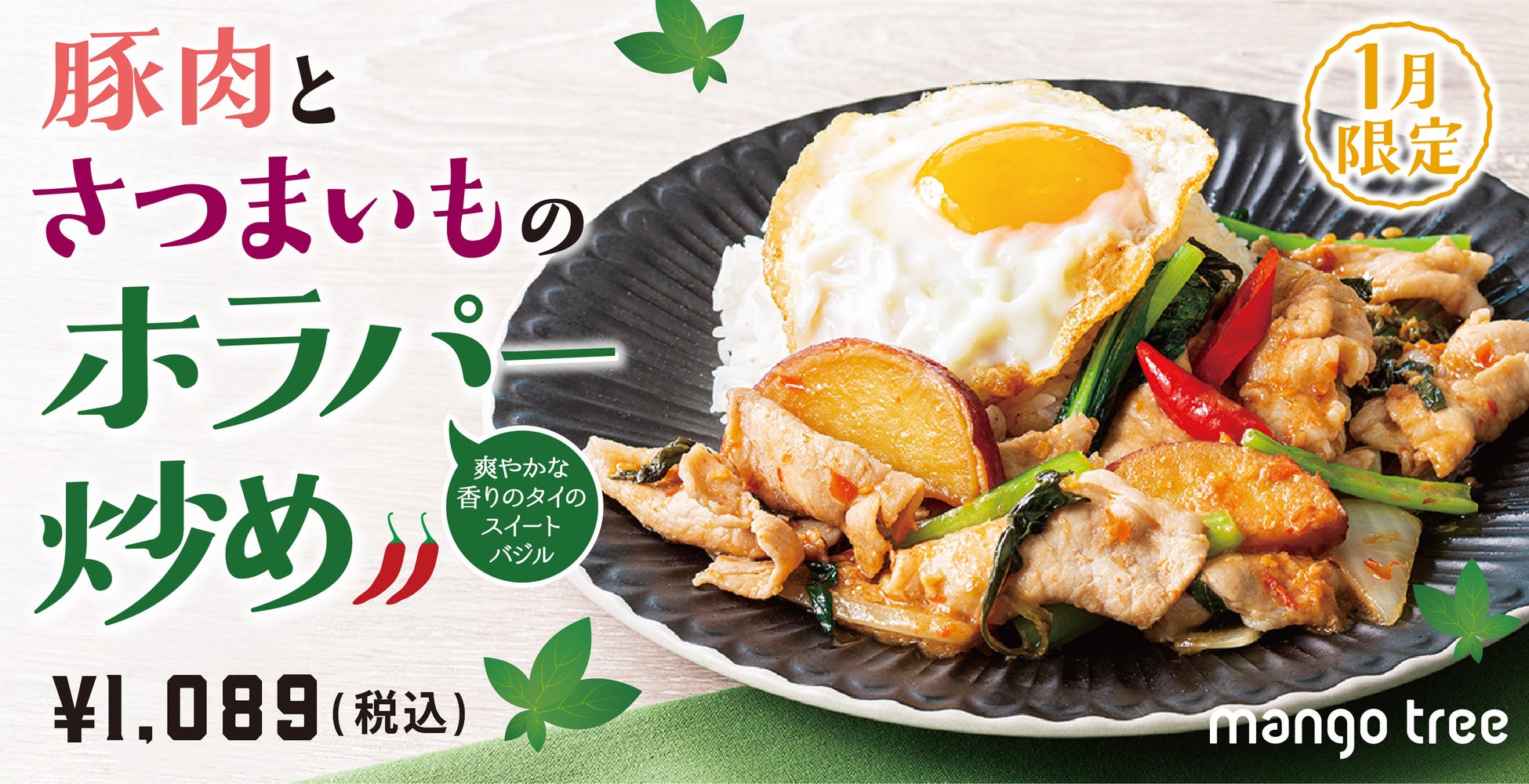アークランドサービスホールディングス株式会社の子会社、海外の本場の味を日本で展開する株式会社ミールワークス(本社:東京都千代田区、代表取締役社長:小島 一生)は、タイ・バンコクに本店をもつ「マンゴツリー」の姉妹店で本格タイ料理を日常的に楽しめる「マンゴツリーカフェ」と「マンゴツリーキッチン」で、2023年1月4日(水)から31日(火)まで「豚肉とさつまいものホラパー炒め」を販売いたします(一部店舗除く)。