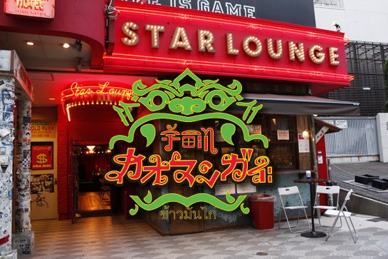 軒先に設置されるビビットなチェアに座ると、本場の屋台気分!