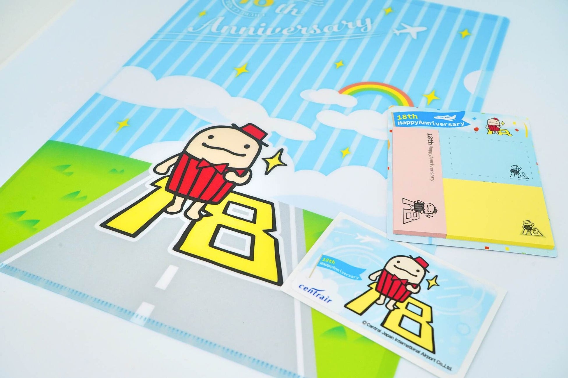 18周年バージョンのロゴマークを利用した限定グッズは数量限定で販売中です。18周年記念グッズはクリアファイル、付箋(ふせん)、ステッカーの全3種類です。