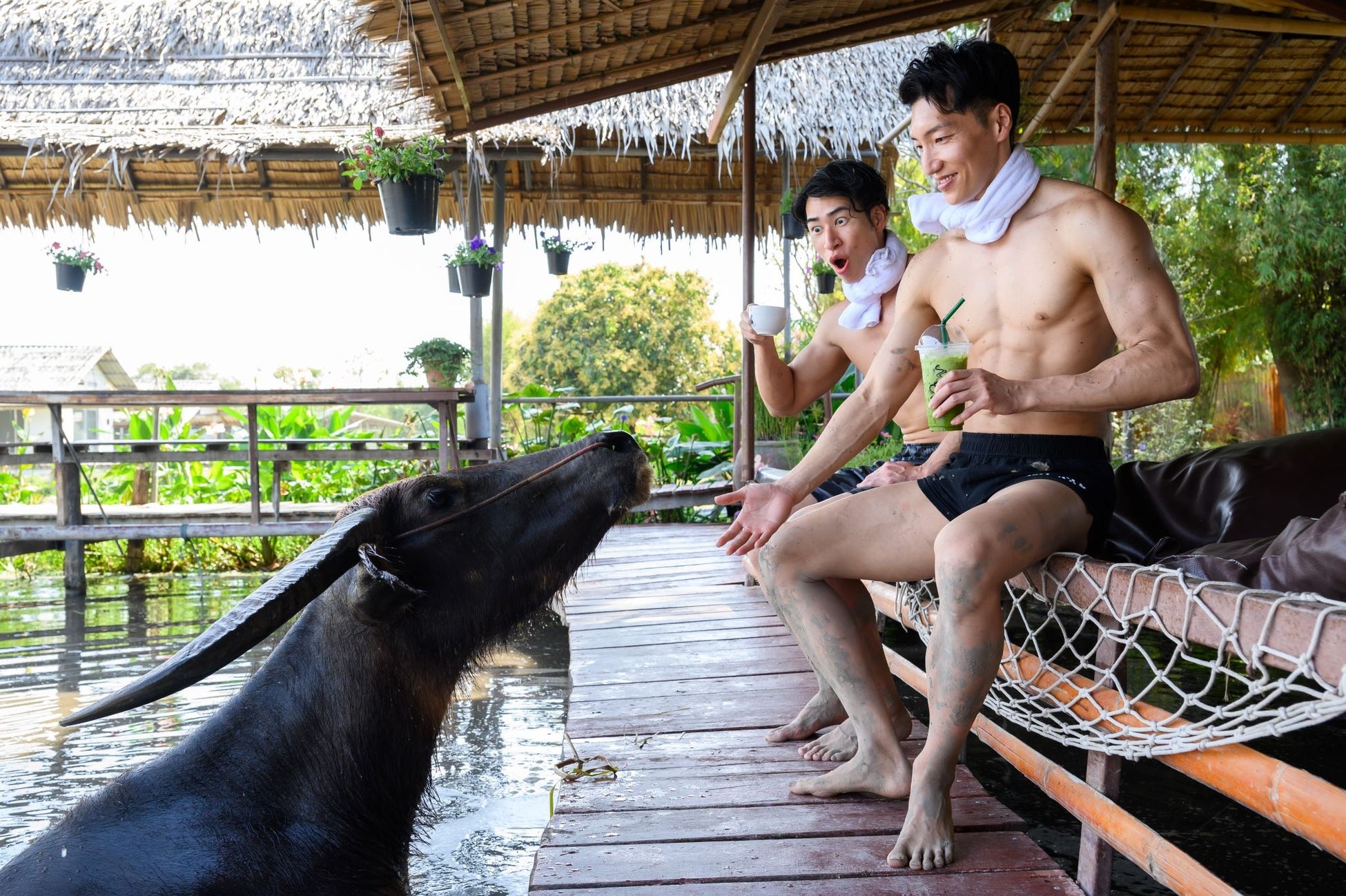 そこにある「バッファローヴィレッジ」にて「水牛とマッチョ」をテーマに撮影しました。