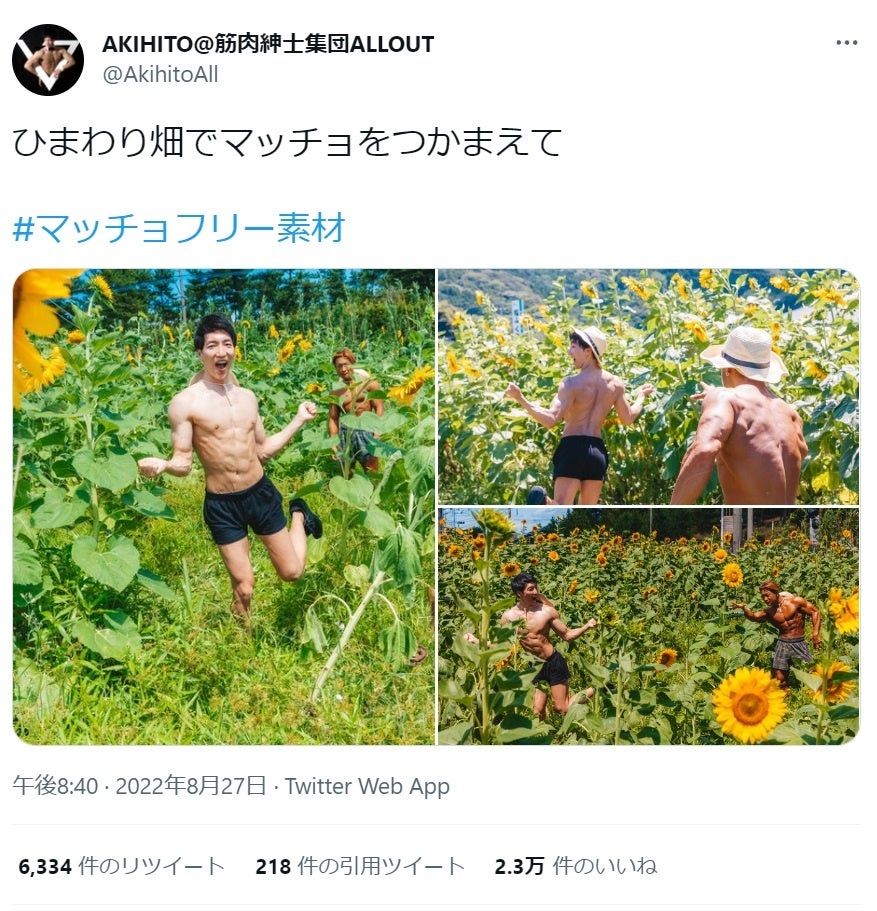 「ひまわり畑でマッチョをつかまえて」(2.3万いいね)