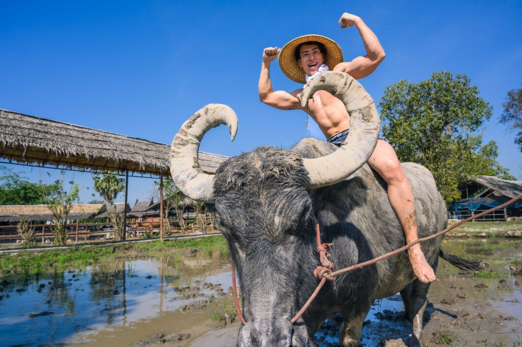 水牛に乗るマッチョ / นักกล้ามขี่ควาย