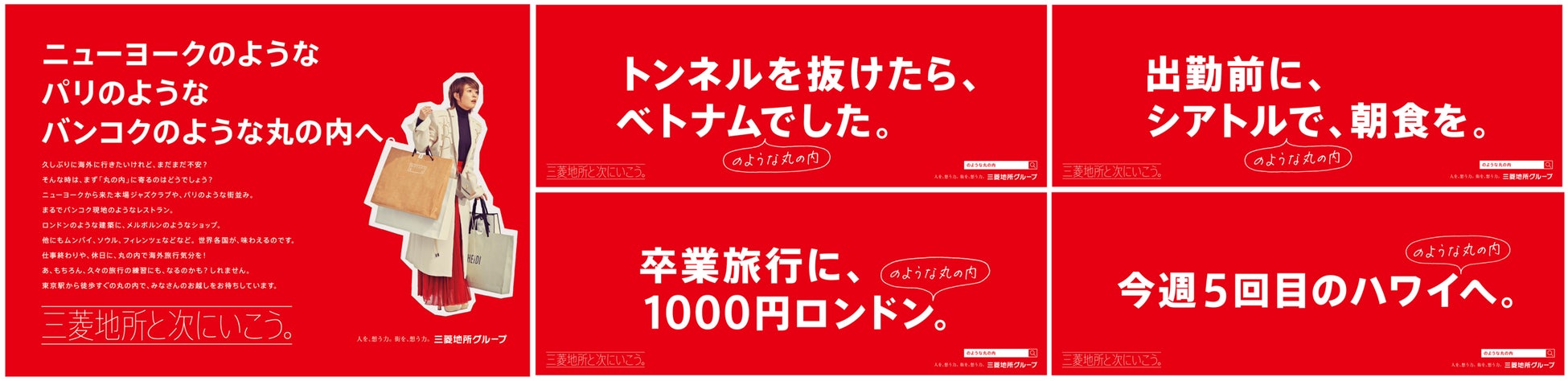 「ニューヨークのような、パリのような、バンコクのような丸の内へ。」をテーマに、18パターンの広告を展開します。さらに、それぞれのキャッチコピーと連動した海外(のような丸の内)スポットをまとめた特設サイトも3月16日(木)よりオープンします。