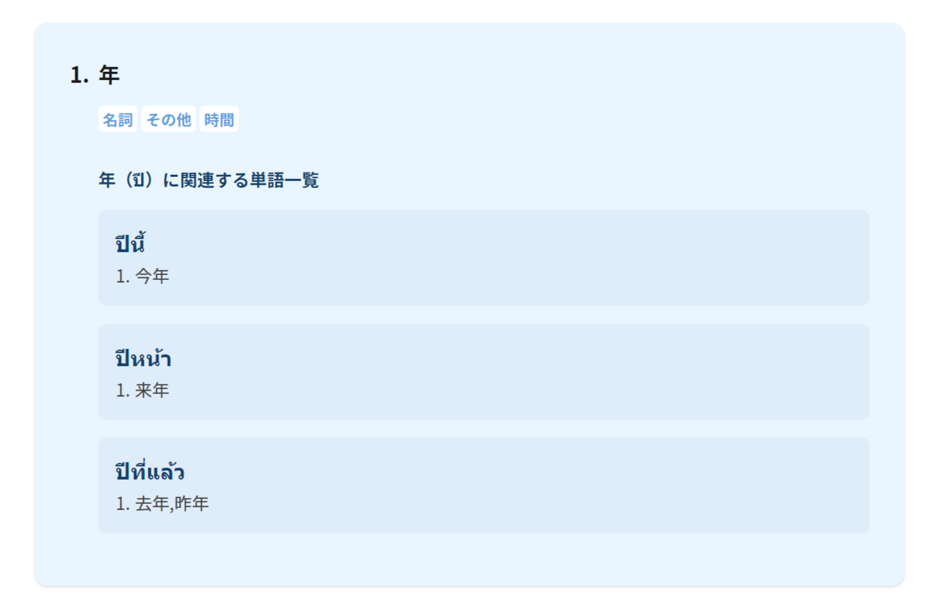 今回のアップデートでは、日々ご利用頂いているユーザー様のご要望等をもとに単語詳細ページのUX面の改善を実施いたしました。成り立ちと関連語句が表示されることで、タイ語学習者の「単語の記憶定着促進」を実現するとともに、関連単語の習得も手助けいたします。3月29日(水)以降順次、登録数を拡大していき日々アップデートが行われる予定です。