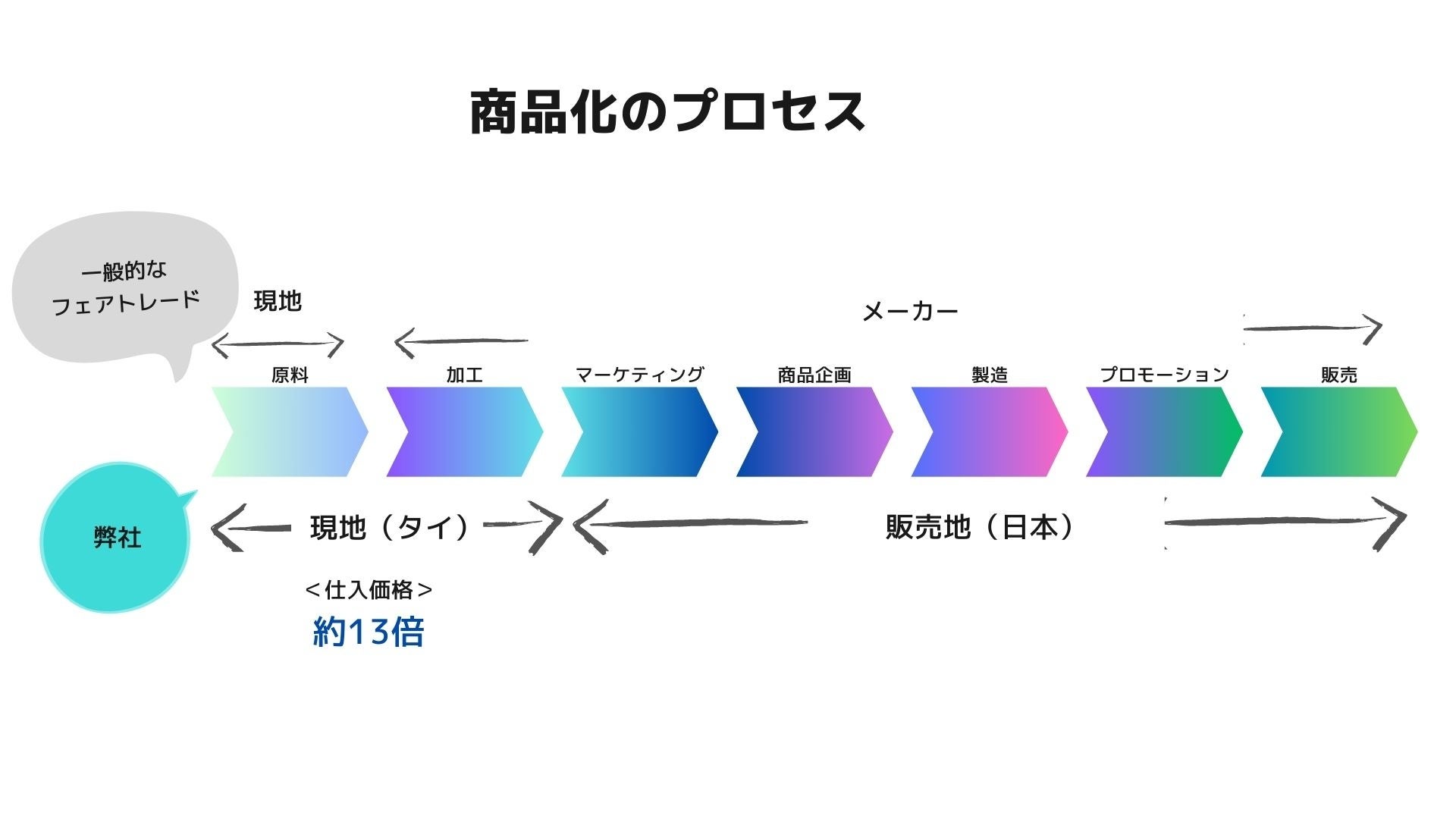現在は、マーケティングや商品企画などは日本でおこなっていますが、将来的にはタイでの販売も検討しており、タイの現地で行える領域を増やしていくことで、地方での職業選択肢を増やしていけると考えています。