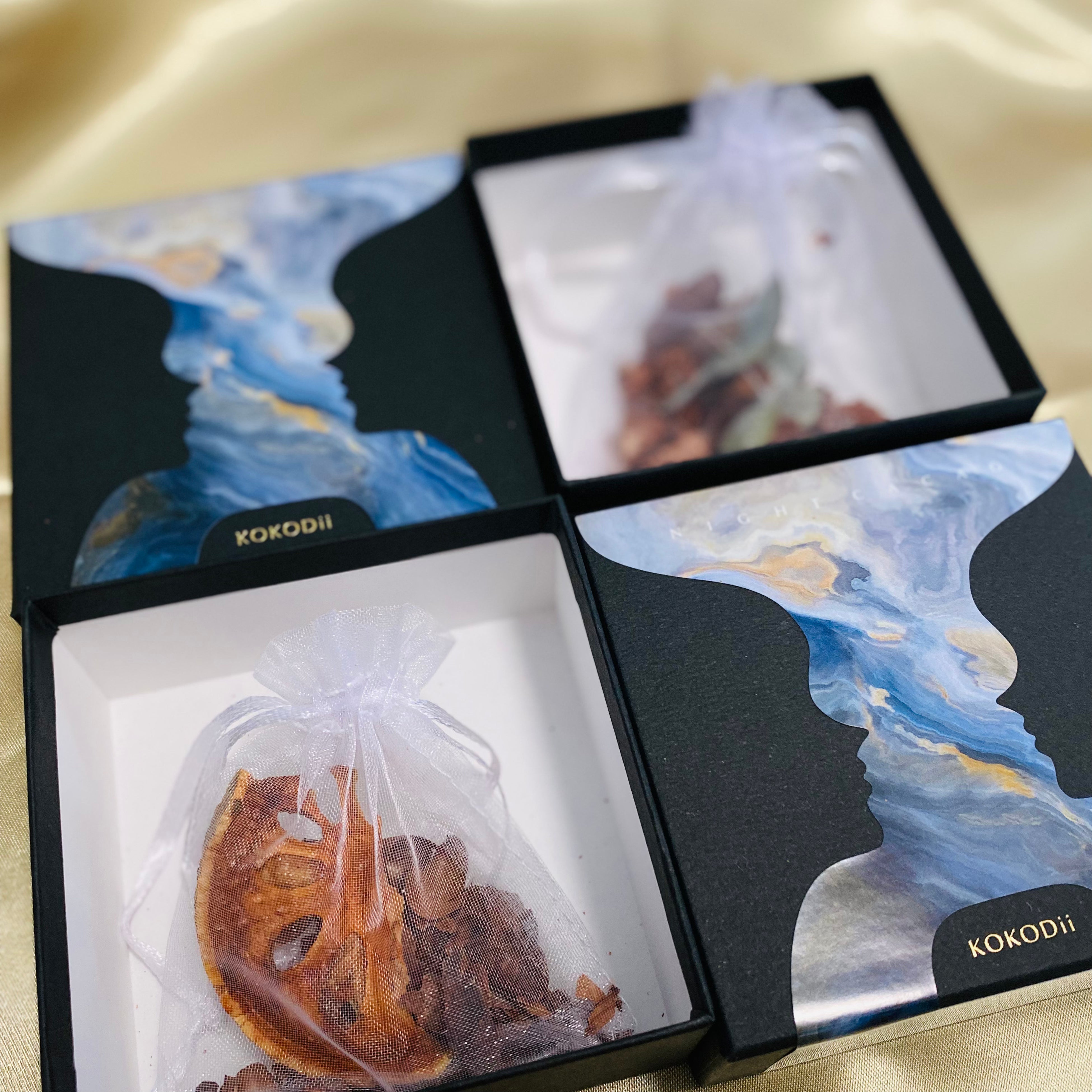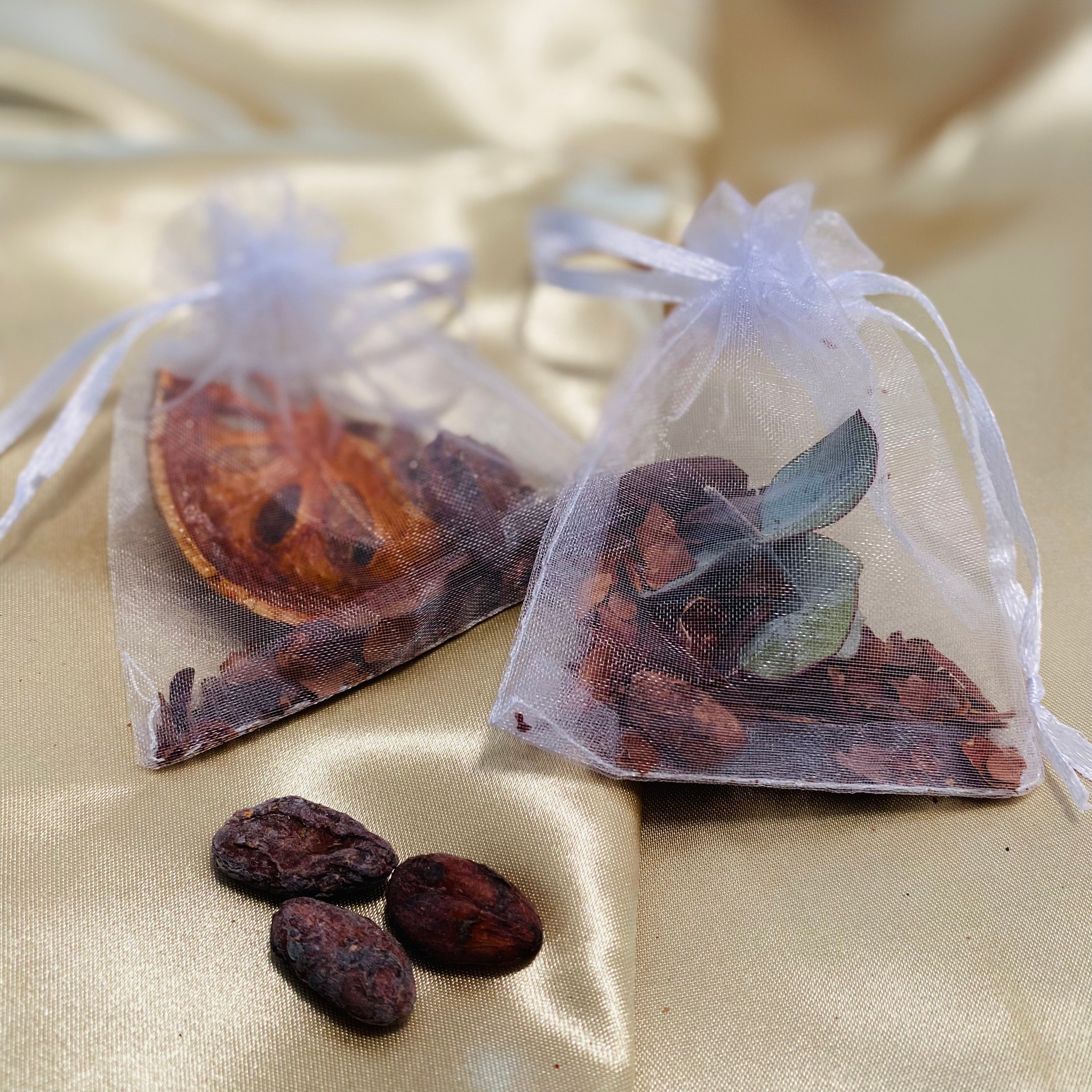 カカオが持つリラックス効果のある香ばしい香りとマトゥム(タイの柑橘系の果物)やユーカリを組み合わせたこれまでにないサシェ(香袋)。お気に入りのクローゼットやスーツケースに忍ばせて、心地よい香りに包まれ心身ともにリラックスし香りを楽しんで。