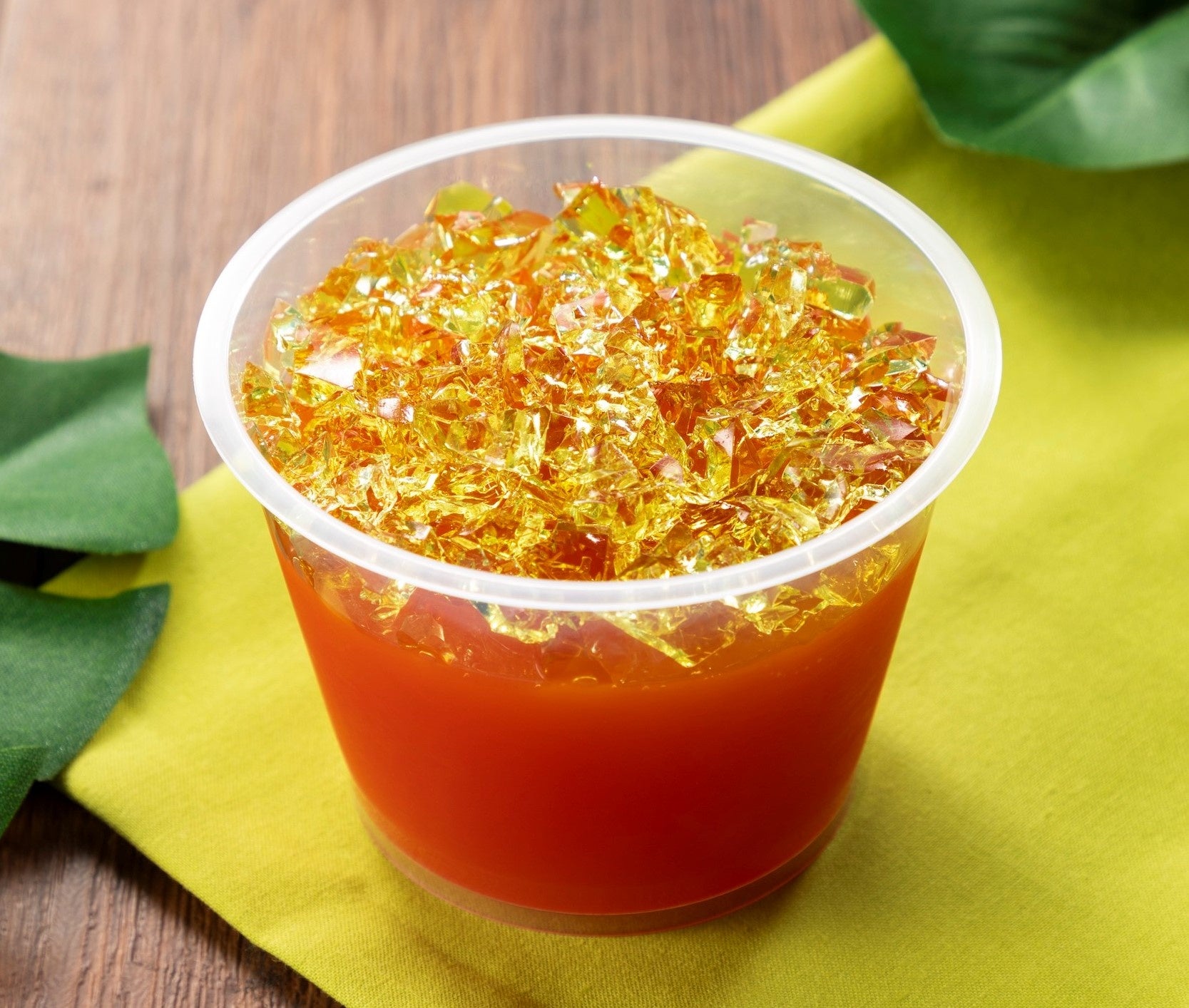 スイカゼリーの上に、皮をイメージした緑色のクラッシュメロンゼリーをトッピングした、夏の果実を満喫するスイーツです。2種類の食感の違うゼリーをお楽しみいただけます。
