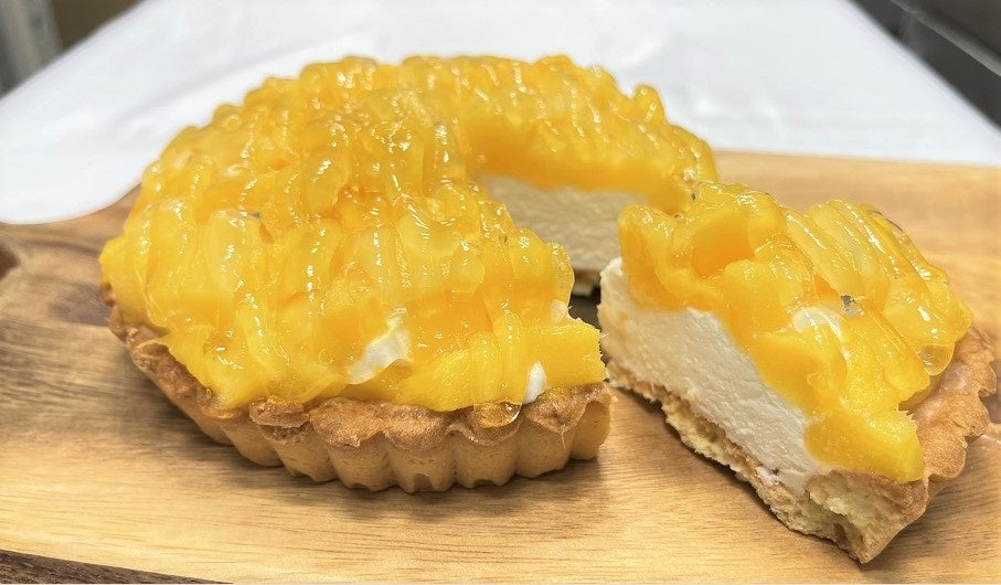 焼き上げたタルトにヨーグルト風味ムース生地とホイップを重ね、タイ産のマンゴーを贅沢に敷き詰めています。ヨーグルト風味の爽やかさと、マンゴーの甘さを程よく感じていただけるマンゴータルトです。