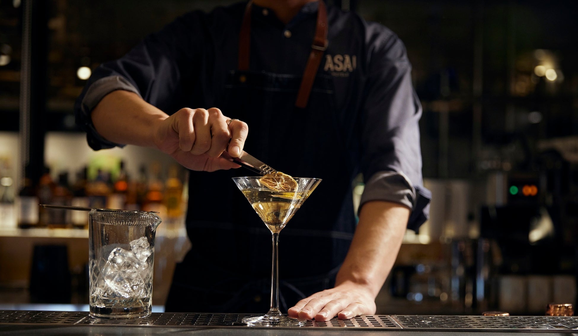 アルコール飲料は、ジンに牛脂とタイバジル、レッドチリのフレーバーを付け、ピリッとした辛さと最後に薫る香ばしさがタイ料理をより引き立てるASAIオリジナルカクテル「ガパオジン&トニック」、マティーニに自家製レモンオイルを浮かべた「アロマティーニ」、モヒートにパクチーをたっぷり加えた「パクチーモヒート」などタイのテイストを加えたカクテルのほか、京都産のお酒やタイビール、オーガニックワインなどを提供します。