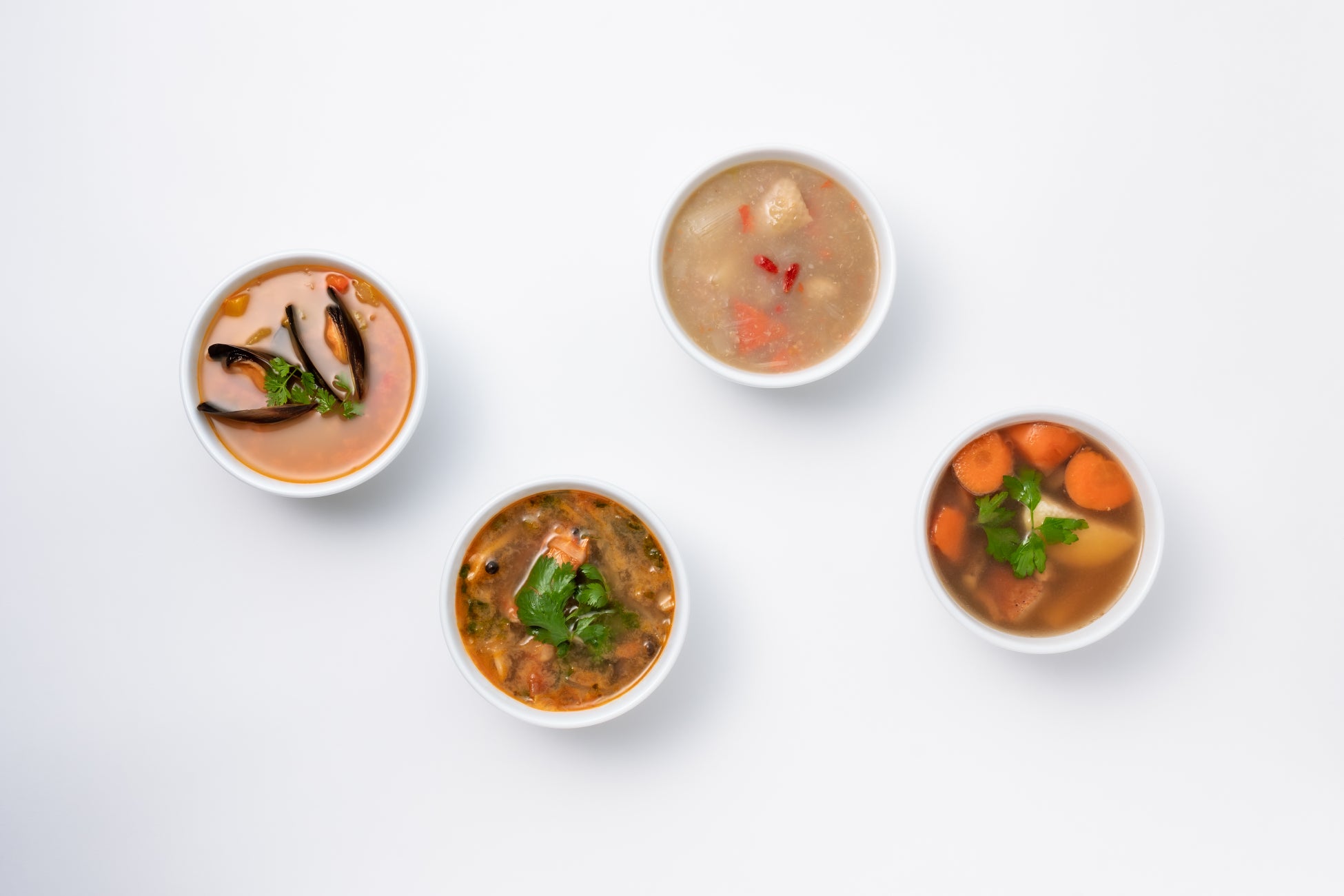 ドクターリセラの無添加にこだわる総料理長と、管理栄養士、パーソナルトレーナーが監修し、レンジで簡単調理、無添加の栄養満点なスープ4種をつくりました。