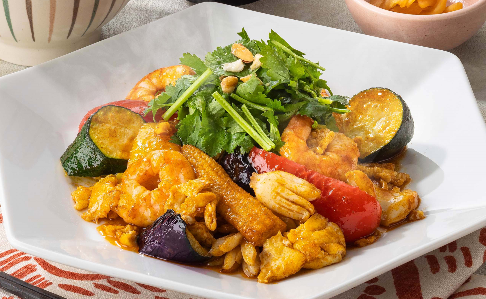 夏野菜と海鮮のトムヤム玉子炒め定食