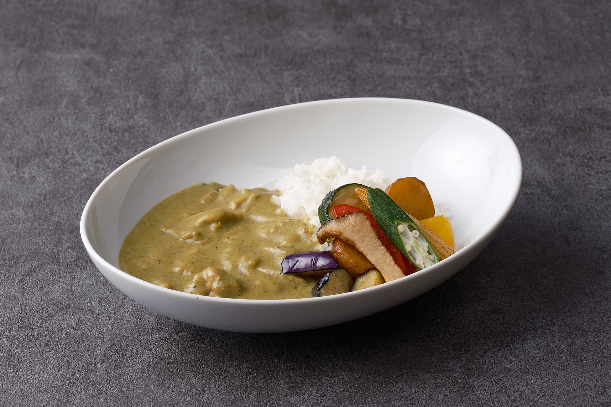 タイを代表するカレーとして有名なスパイシーカレー。青唐辛子のさわやかな辛さと様々なハーブやスパイスの香り、ココナッツミルクの甘みが絶妙で、夏野菜をたっぷり添えました。