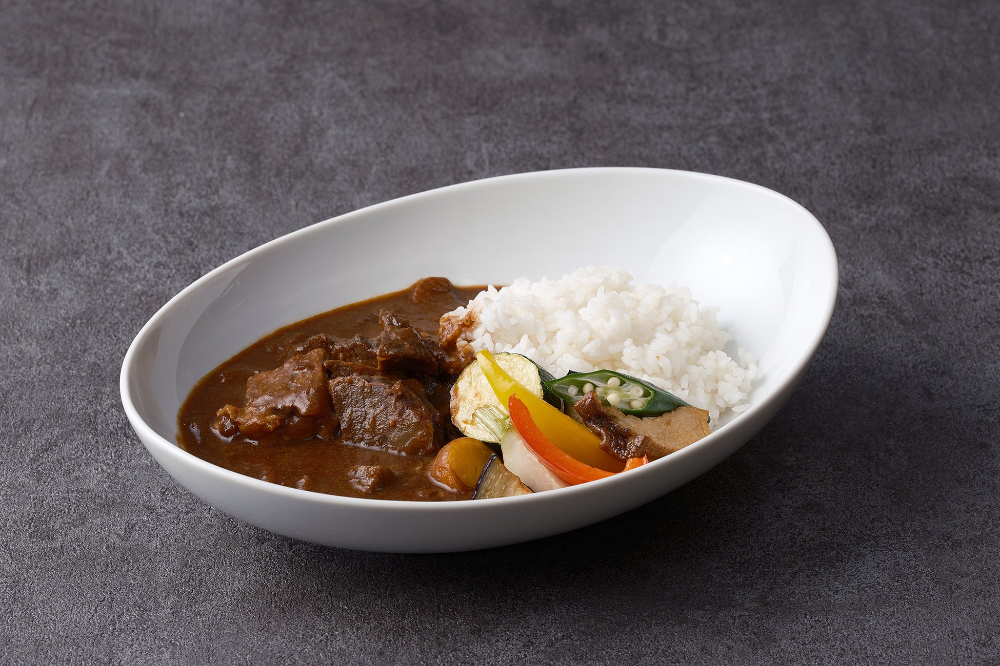 毎年恒例の「夏のカレーフェア」は、フランス料理の技法でじっくりと丁寧に煮込んで、牛肉の旨みが凝縮された奥深い味わいの「牛ほほ肉のフォンド・ヴォー ビーフカレー」、青唐辛子のピリッとした辛さがクセになり、ハーブとココナッツミルクを加えることでより一層コクが深まり、爽やか香りとマイルドな風味が楽しめる「夏野菜のグリーンカレー」、ココナッツミルクの甘みが引き立つカレースープにハンバーグと旬の野菜をたっぷり入れた、食べ応えがある贅沢な「具沢山ハンバーグスープカレー」を揃え、それぞれ異なる風味や辛さをお楽しみいただけます。さらに、オプションでカレーに合う栄養バランスを整えるサラダや季節のフルーツをご用意いたしました。バラエティ豊かなカレーは、ランチやディナーにはもちろん、気軽に食べられる軽食としてもおすすめです。