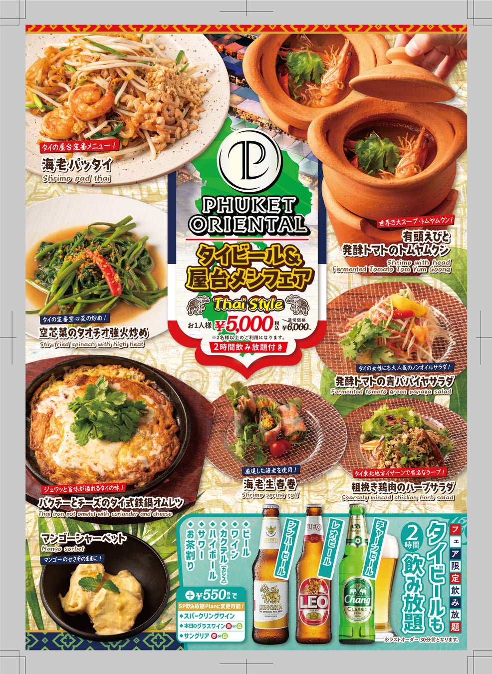 - 【PHUKET ORIENTAL横浜】 タイビール飲み放題&タイ屋台料理フェアー 7月1日から開催!タイ式焼肉「ムーガタ」も!