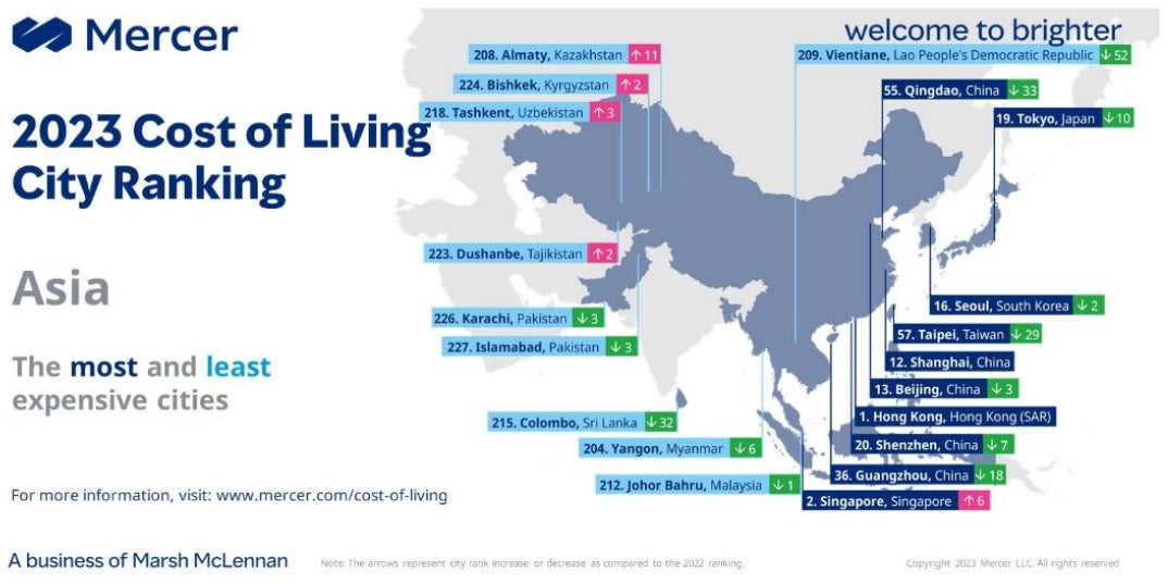 Mercer 2023 Cost of Living City Ranking – Most and least expensive cities across Asia