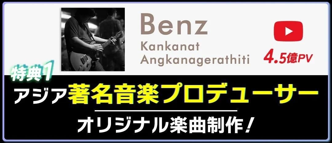 作曲した楽曲のYouTube視聴数は4.5億回超。アジアで活躍する著名な音楽プロデューサーBenzがオリジナル曲を提供します。