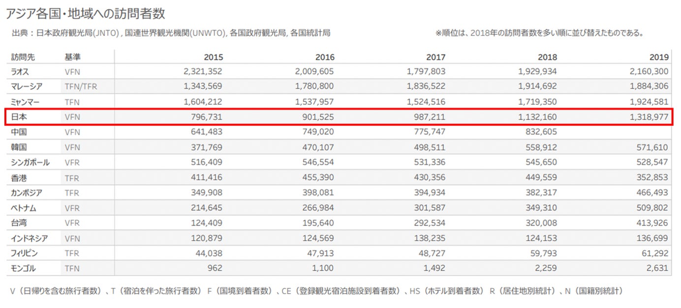 (出典:⽇本政府観光局(JNTO) , 国連世界観光機関(UNWTO), 各国政府観光局, 各国統計局
