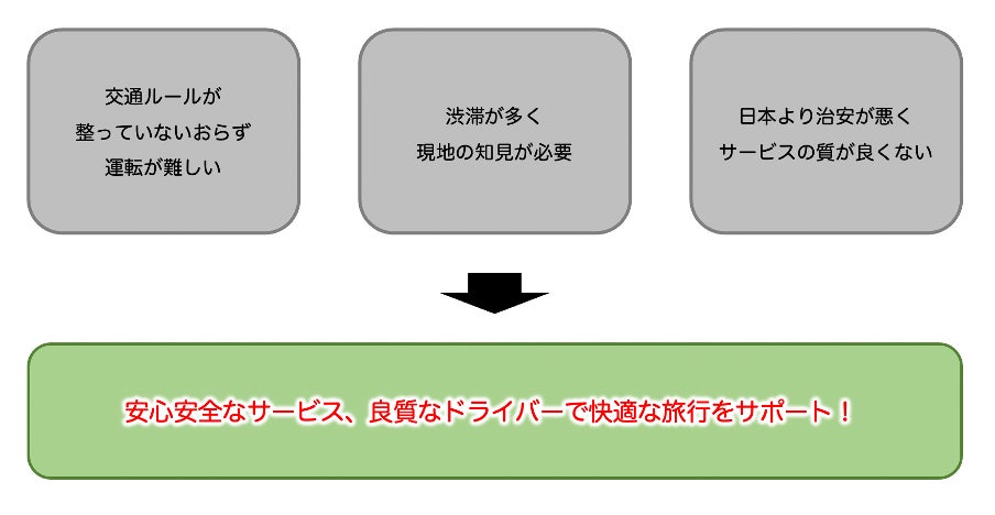 そのため、交通状況に詳しい現地のドライバーに運転してもらう方が、遥かに移動の質が向上すると考え、LOMACAが持つ100名の現地ドライバーネットワークを活用した日本人観光客向けの安心安全なサービスを展開することにしました。