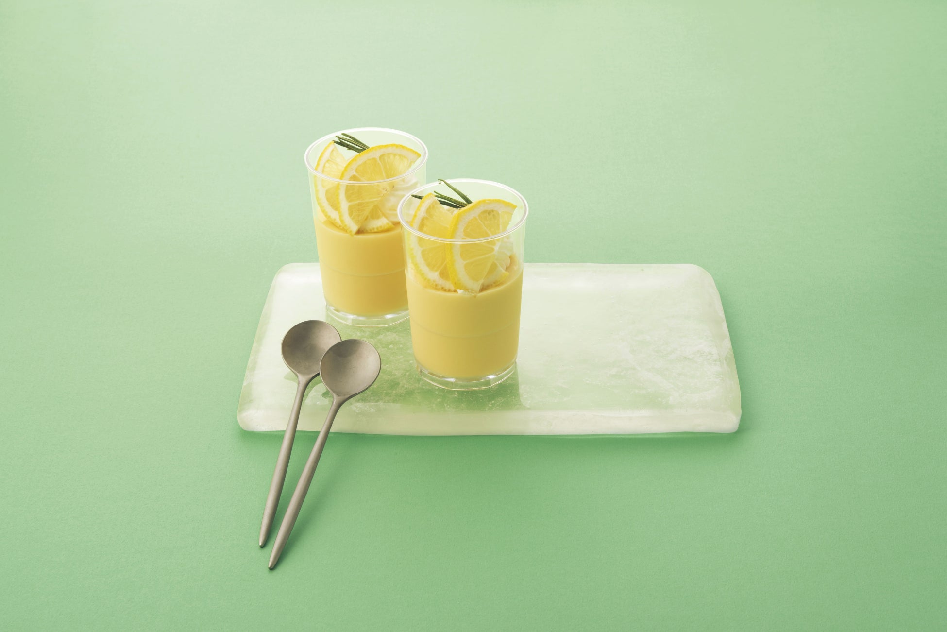 自社ブランド卵を使用した爽やかなレモン風味のプリン。レモンスライスと生クリームで飾り付けて夏らしく仕上げました。