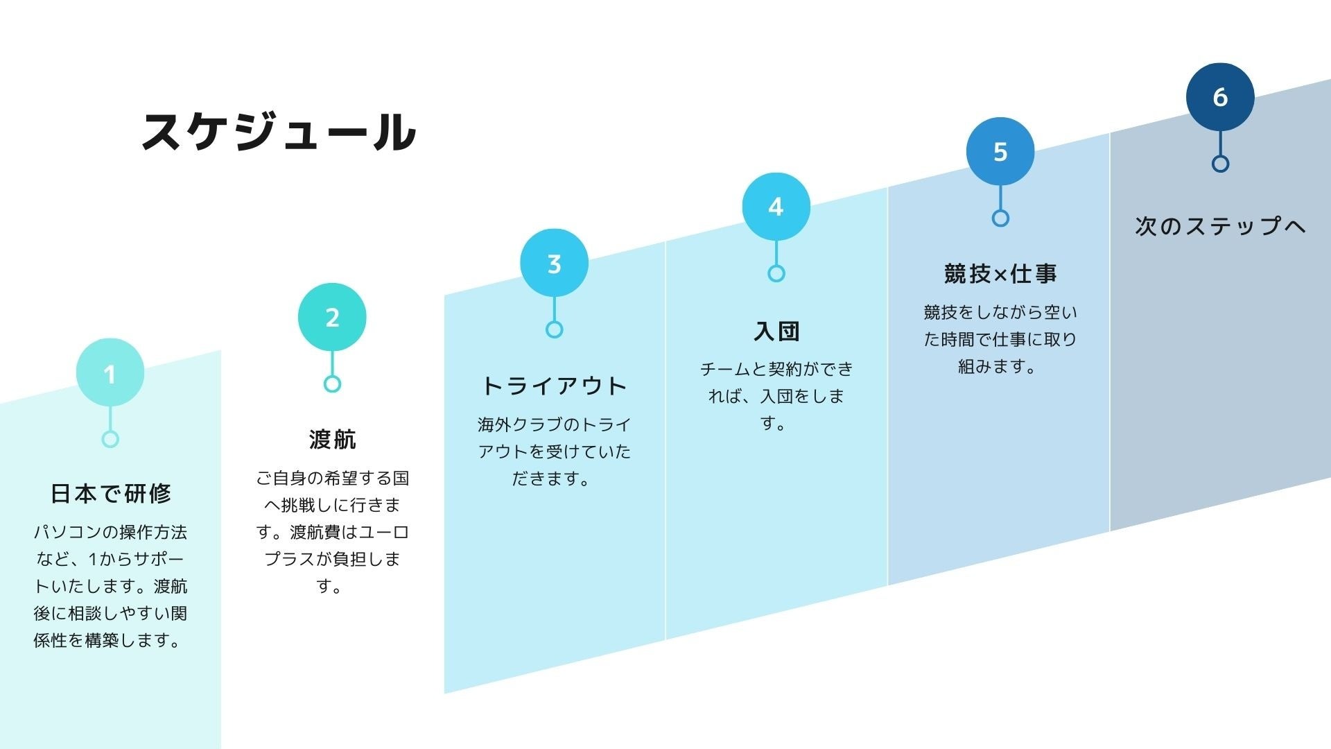 今後、より海外で挑戦したいという前のめりな方を応援するために、サッカーでの海外留学を支援しているユーロプラスと業務提携を行ない、金銭的な面からチーム探しまで、包括的な支援を実施していきます。