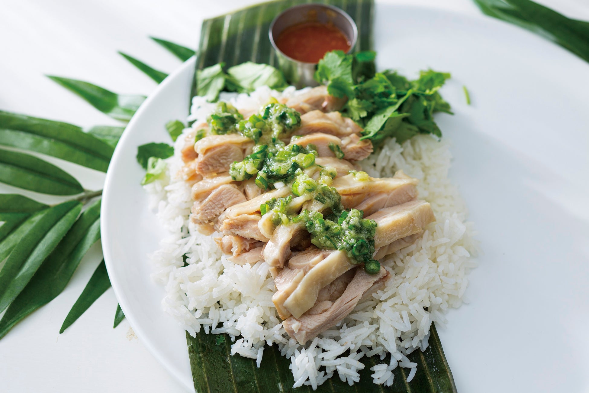 茹でた鶏を鶏のスープで炊いたジャスミンライスの上にのせたタイ屋台の定番メニュー。