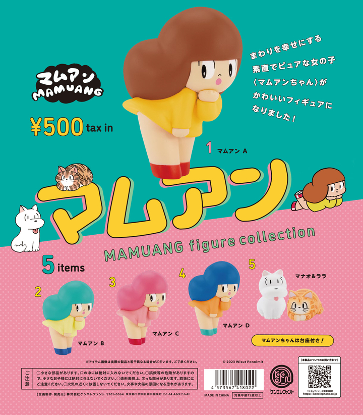 カプセルトイやフィギュアの企画・製造を手がける株式会社ケンエレファントは、タイの漫画家であるウィスット ポンニミットが描くキャラクター・マムアンちゃんをミニチュアフィギュア化した「マムアン フィギュアコレクション」を、2023年9月下旬に発売します。