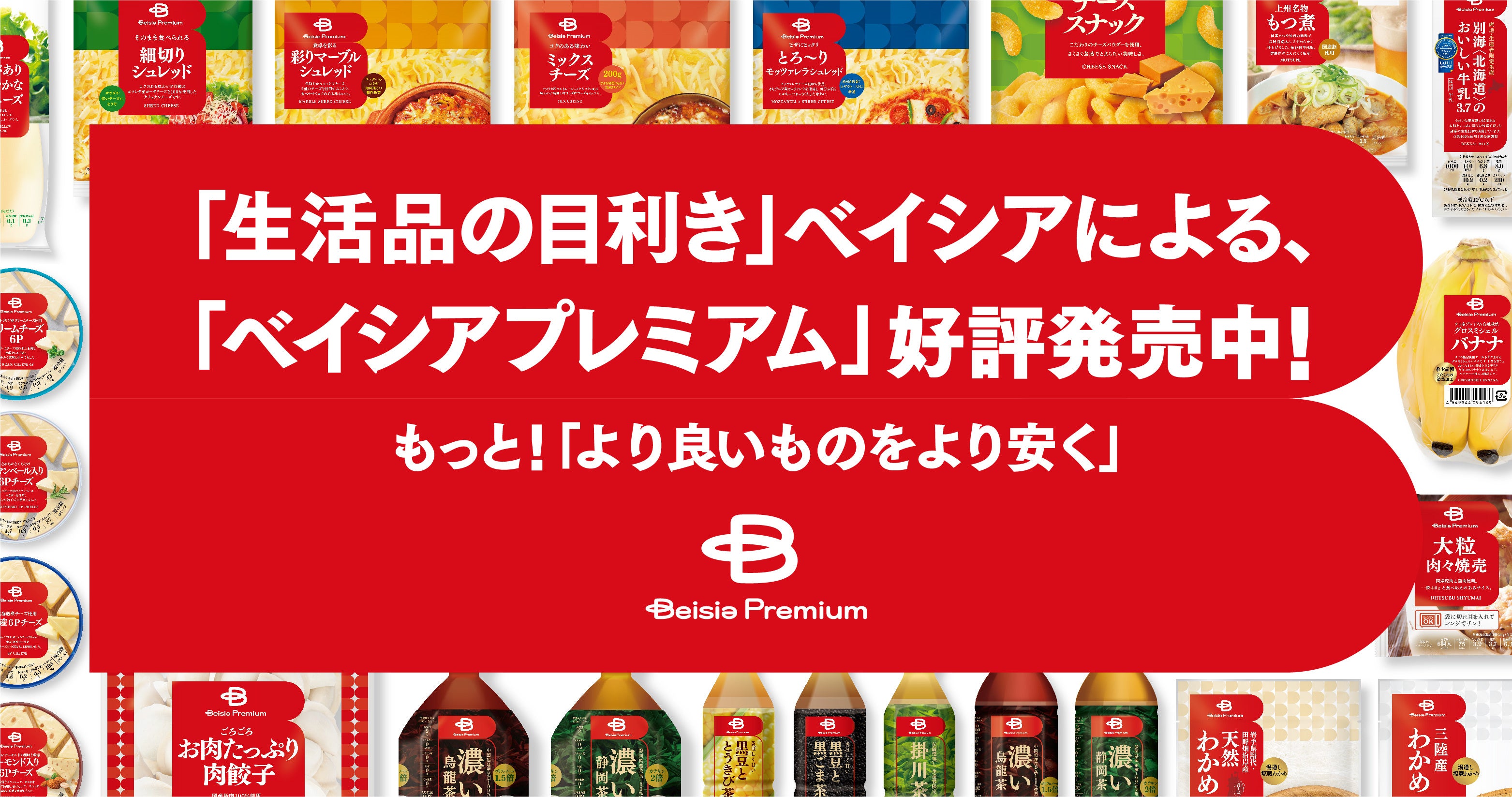 物価高騰により節約意識が高まる中、お客様は低価格を前提としたうえでブランドや品質・味など、付加価値によって商品を選択する傾向にあり、スーパーのPBは「低価格+α」で差別化する”品質競争時代”に突入しています。そうした背景の中で、当社は創業来掲げてきた「より良いものをより安く」の理念に立脚し、かねてより定評のあった低価格に改めて磨きをかけ、さらに質を高めた新プライベートブランド「Beisia Premium」を立ち上げました。