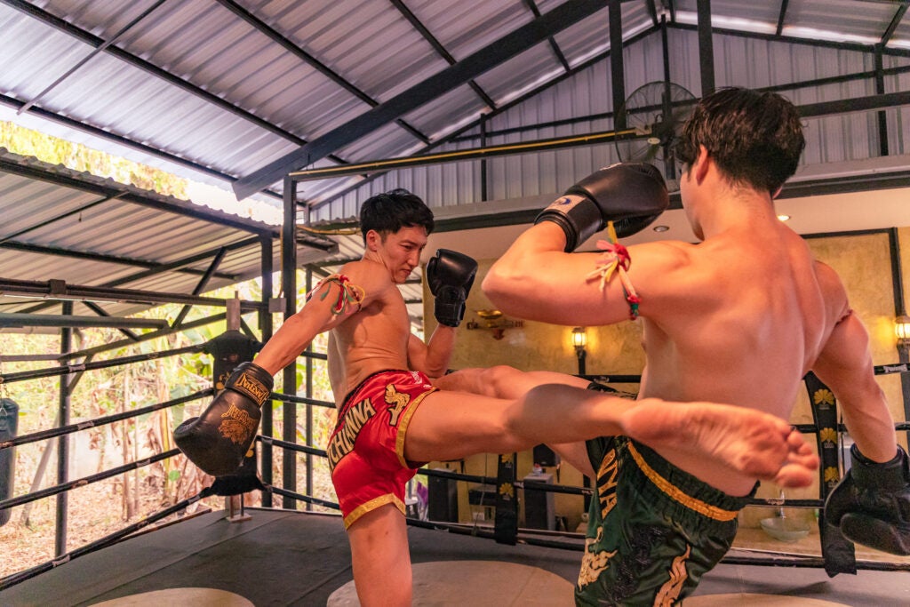 มวยไทยและนักเพาะกาย. ムエタイで戦うマッチョのフリー素材