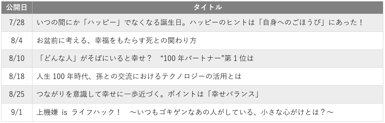 また、100年生活者研究所では毎週金曜日に、「人生100年時代」をテーマとしたニュースを配信しています。記事の詳細は右記URLにてご確認ください。※研究所HP:https://well-being-matrix.com/100years_lab/