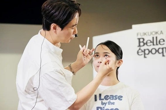 実際にモデルさんに韓国アイドルメイクのデモンストレーションをしている様子。