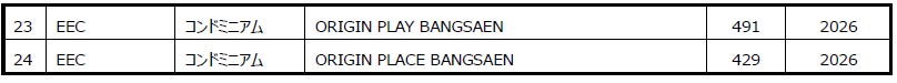 ・バンコク以外のタイ全土のコンドミニアム開発事業を手掛けるOrigin社連結子会社
