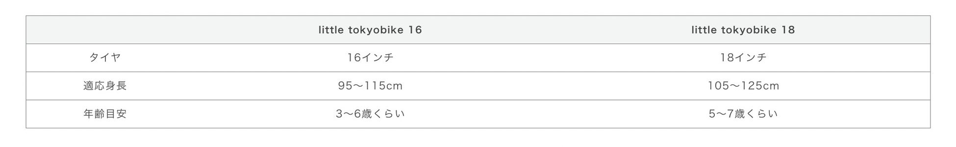 今までの16インチタイヤより一回り大きな18インチタイヤの little tokyobike 18を発売します。身長105cm〜125cmに対応した、キックバイクからの乗り換えにもピッタリなサイズです。従来の16インチ little tokyobikeは、「little tokyobike 16」へ、新しく加わった18インチは「little tokyobike 18」となります。
